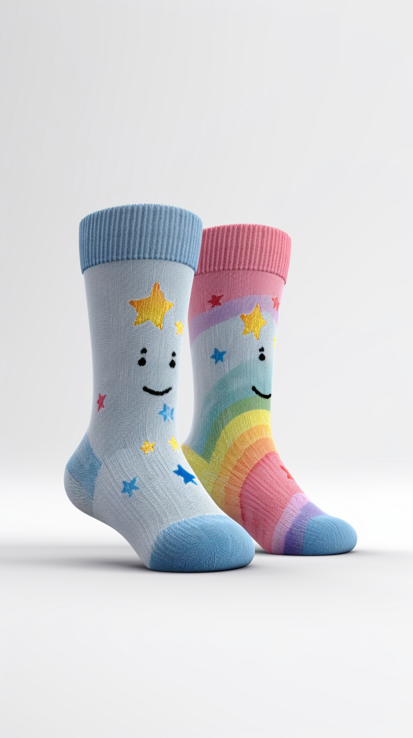 Smiley-Socken mit Regenbogenstreifen